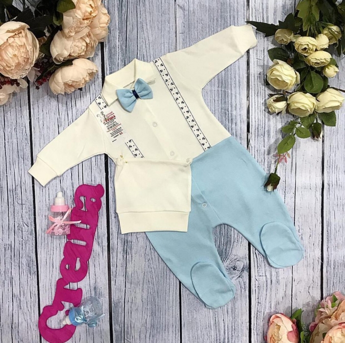 Комбинезон + шапка из интерлока-пенье , низ комбинезона голубого цвета.